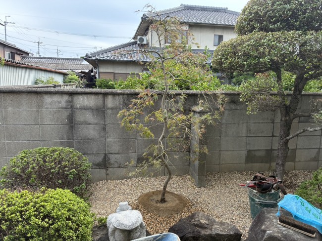 今回は松、モミジ、つげを植栽しました。